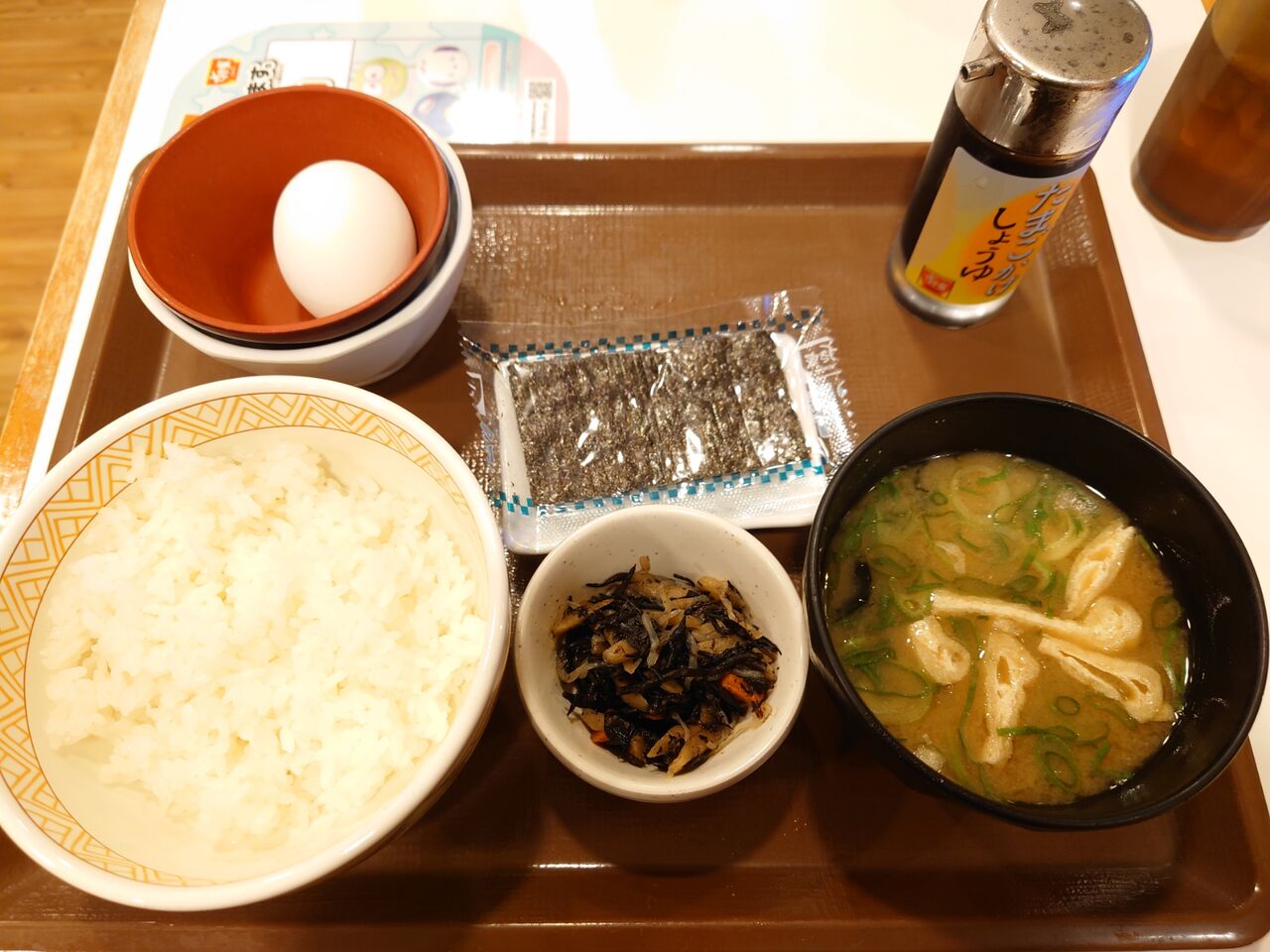 202411月27 シンプル朝定 すき屋で朝定食しました。やっとスマホから画像投稿できるようになったアニキです。すき家で一番安いメニューをご飯ミニで頼んだら260円でした。卵をはじめ海苔に小鉢に味噌汁までついてこれは安いし味も美味しい。一人暮らしのサラリーマンが出勤前にすき家で朝食を済ますのも納得です。このご時世にこれは有難い。にほんブログ村にほんブログ村